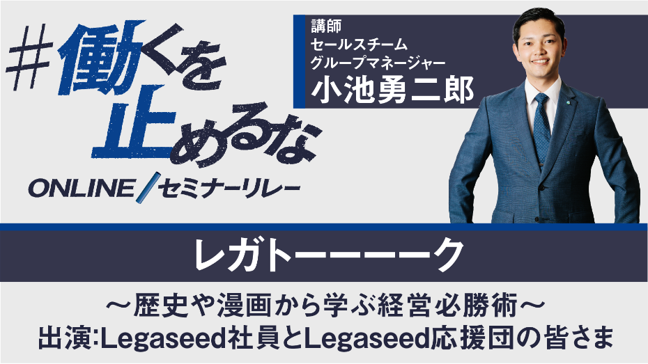 オンラインセミナーリレーとは、昨年の緊急事態宣言下で流行した「ギャグリレー」のように、Legaseedから順番に1月12日(火)より毎営業日1人ずつ、LegaseedのYouTubeチャンネル上で、ONLINEセミナーを行うというものです。